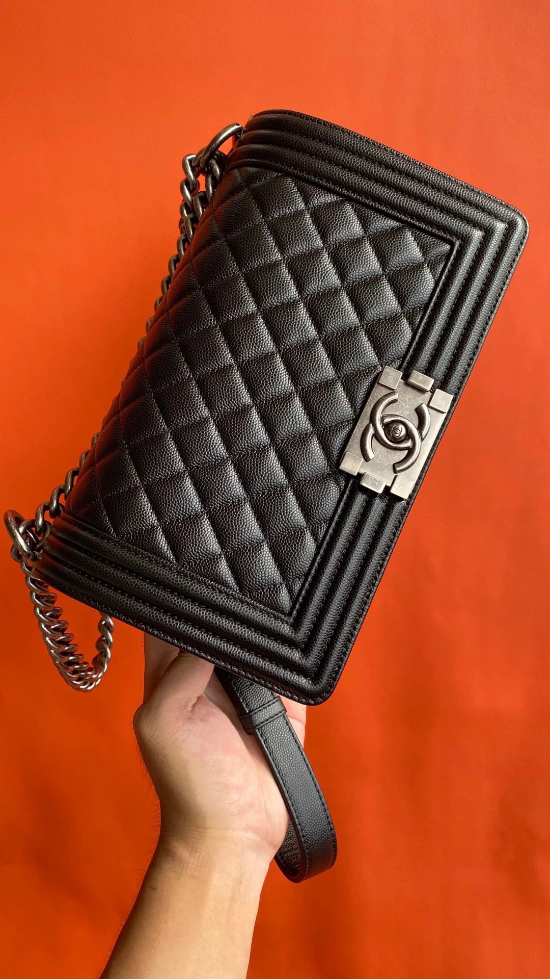 Grained Calfskin& Ruthenium-Finish Metal Black dimensions 5.9 × 9.8 × 3.5 in (cm) We have other colors, other sizes, different colors of metal
