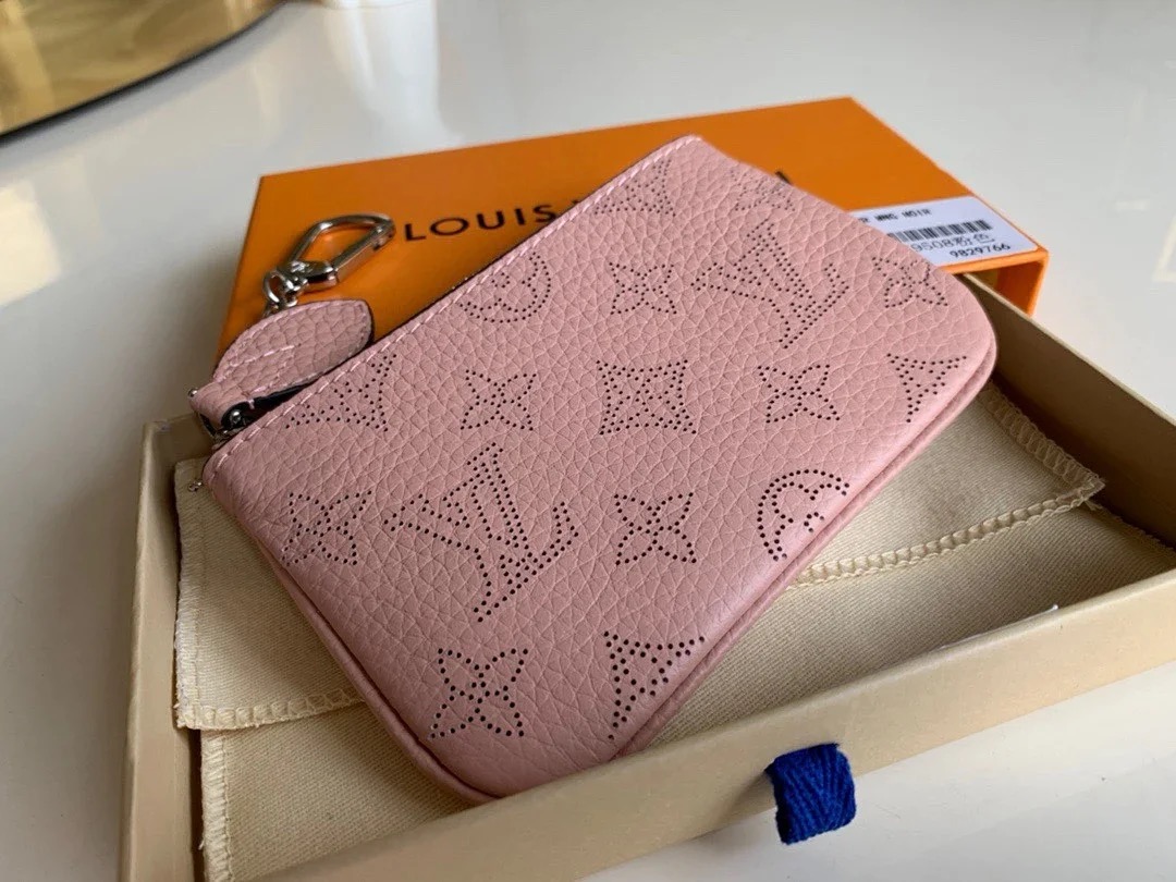 This elegant Key Pouch is crafted from supple Mahina leather, whose perforations recreate the iconic Monogram pattern. With its secure zip closure, this practical accessory can hold coins and cards as well as keys. It can be hooked onto a bag or belt, or attached to the D-ring inside many Louis Vuitton bags.