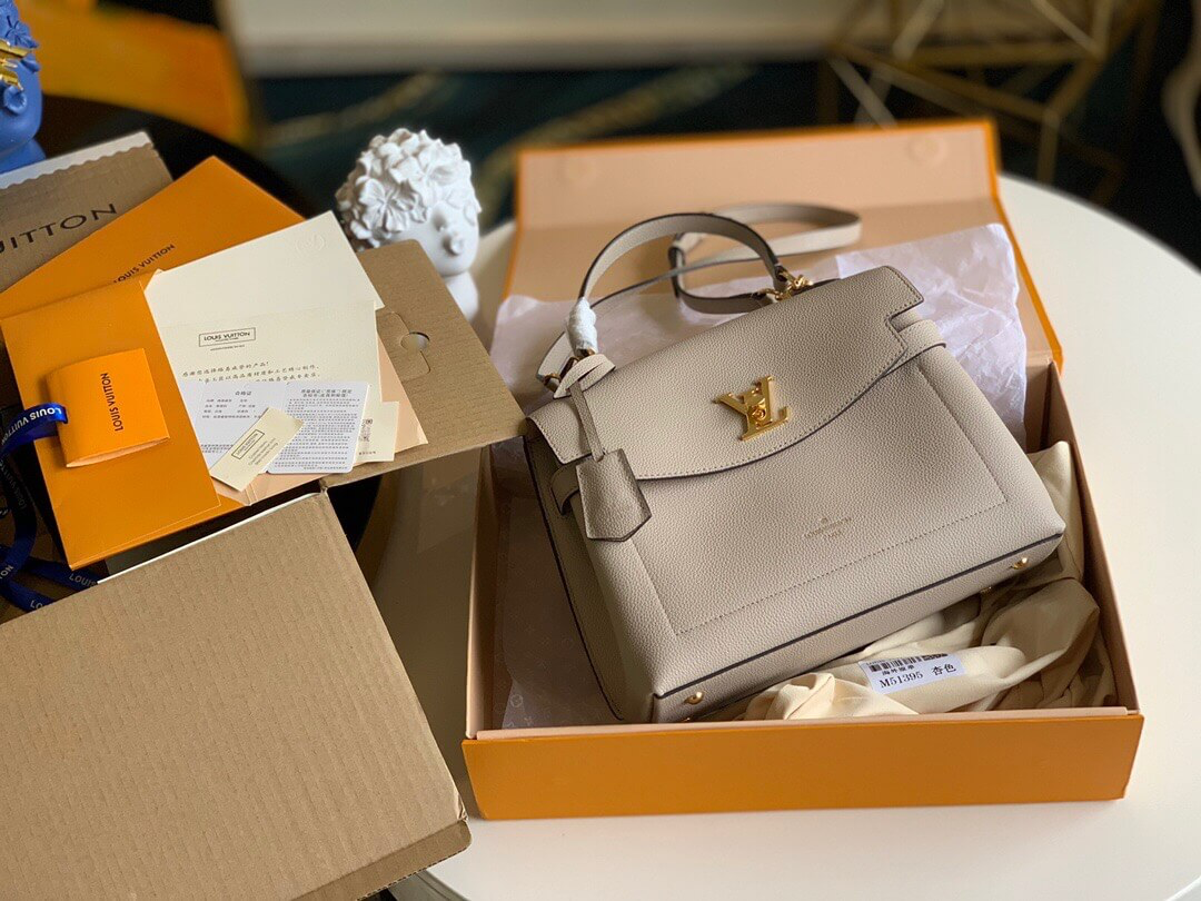 This Lockme Ever single-handle handbag has ample space in soft calf leather, embellished with LV turnbuckles, and the chic lines on the top flap add a modern charm. Leather shoulder straps liberate your hands and provide an elegant choice for day trips.