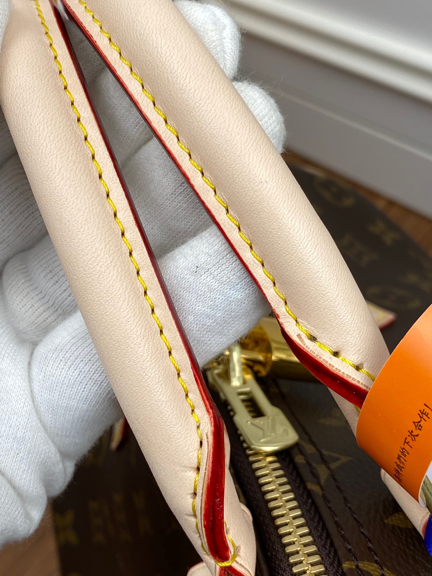 - Gold-color hardware