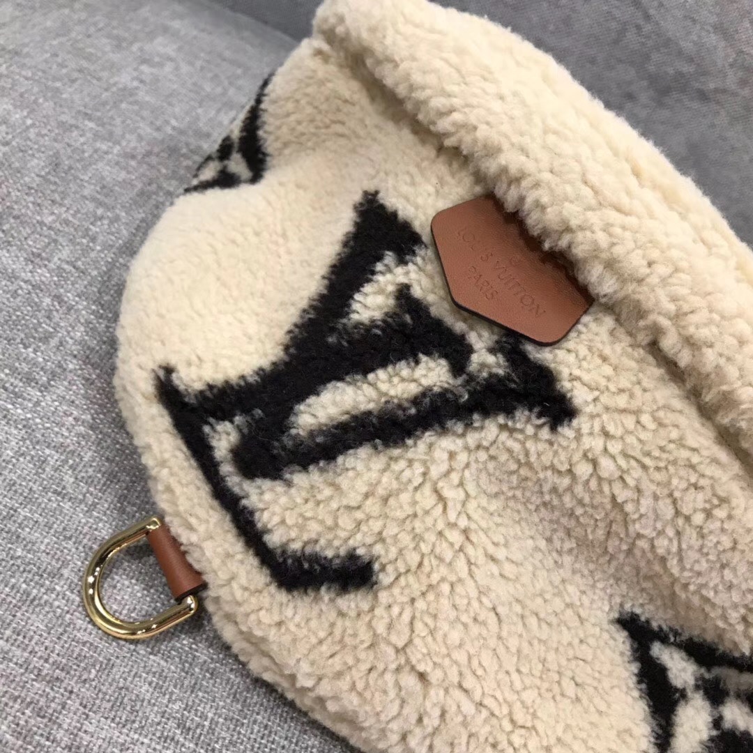 Louis Vuitton uses an intarsia technique to create a Monogram pattern on the soft wool surface of this pocket, creating a fluffy look and smooth texture.