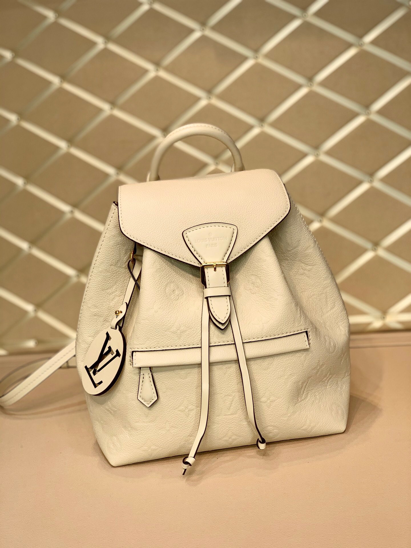 Louis Vuitton reinterprets the House’s iconic Montsouris Backpack from 1994 in Monogram Empreinte embossed leather. The pack’s pure lines are enlivened with a vintage-style golden buckle and a playful yet subtle LV charm. Two adjustable leather straps make this body-friendly bag comfortable to carry while the zipped outside pocket gives easy access to essentials.