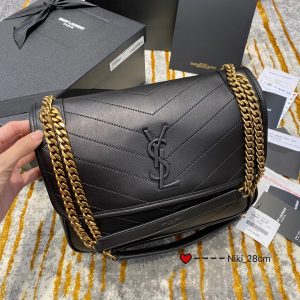 .SAINT LAURENT YSL CASSANDRA Grained Chain Tote .Linen and cowhide .Flip metal buckle .Shoulder Messenger Bag .578000